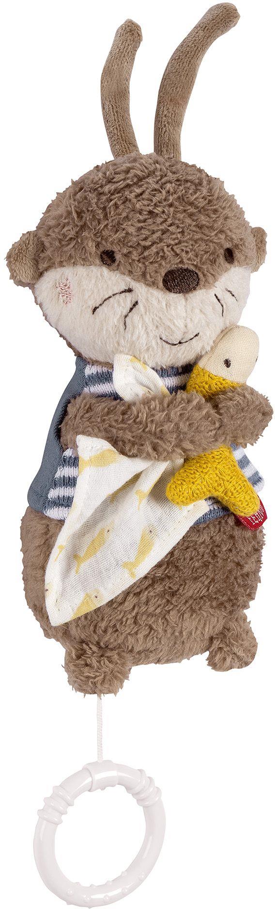 Mini-Spieluhr Otter, Größe 20 cm, Melodie "Guten Abend, gut´Nacht), Größe ca. 20 cm, waschbar. Der kuschelige Otter aus der Otter Theo Kollektion ist nicht nur ein treuer Begleiter, sondern tröstet und beruhigt mit seiner sanften Einschlafmelodie "Guten Abend, gut´ Nacht (Brahms Wiegenlied)"! Durch die praktische Größe und die Befestigungsbändchen kann man den Plüsch- Otter überall hin mitnehmen. Fühlen, Knuddeln und Liebhaben: Ganz schnell wird er zu Babys bestem Freund! --- mit integriertem und herausnehmbarem Spielwerk zum Aufziehen / Melodie: Guten Abend, gut´ Nacht (Brahms Wiegenlied) / Spieldauer ca. 1,5 - 2 Minuten / Spieluhr vor dem Waschen entnehmen / Betätigen des Reißverschlusses nur durch Erwachsene / aus der Otter Theo Kollektion / ideal als Geschenk zur Geburt, Taufe oder als Geburtstagsgeschenk für Babys und Kleinkinder / von unabhängigen Testinstituten auf Sicherheit geprüft