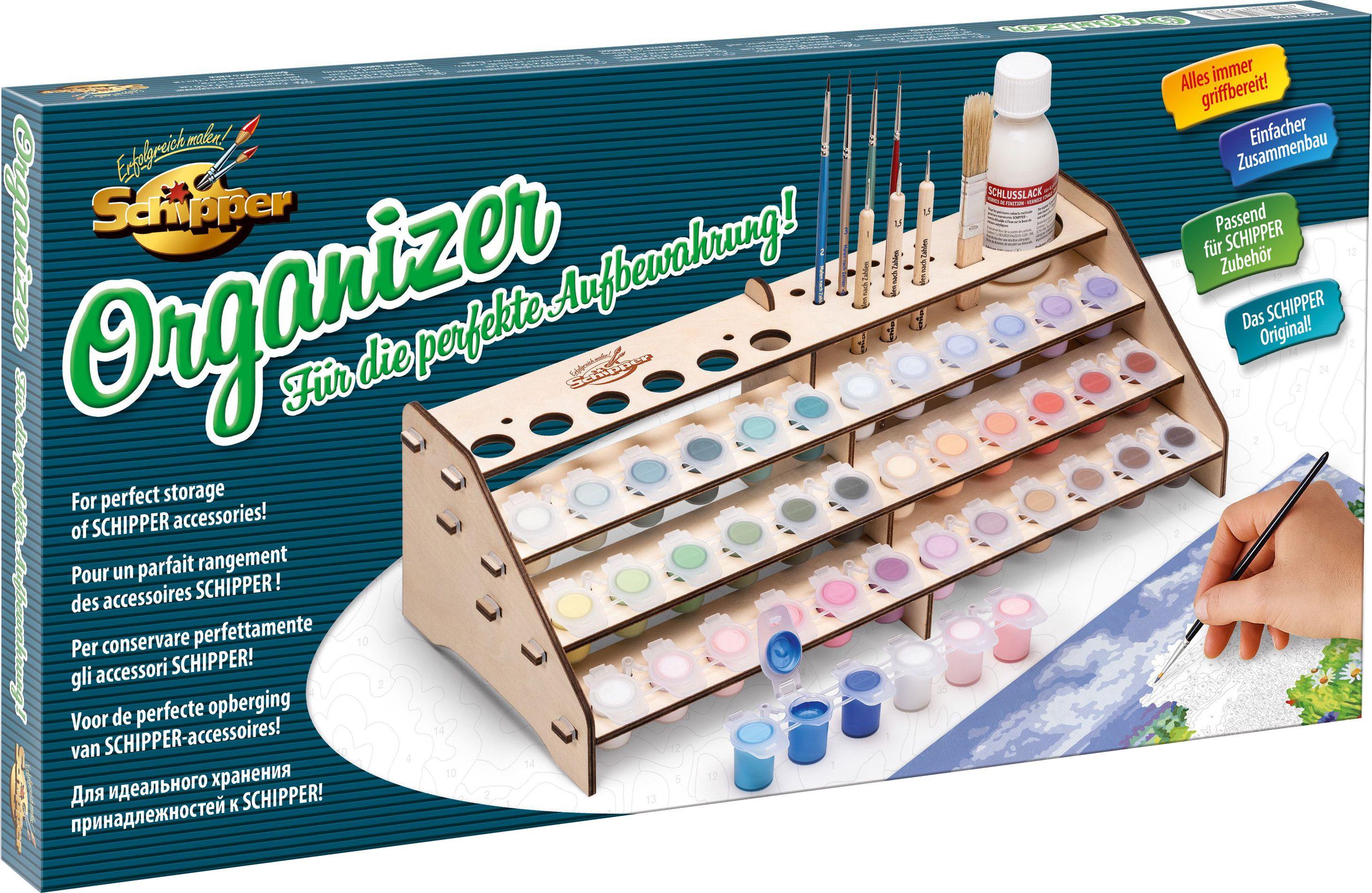 Entdecke den neuen Organizer von Schipper – die perfekte Lösung, um deine Malen-nach-Zahlen-Projekte ordentlich zu halten! Mit seinen Maßen von 19x39x10 cm bietet der Organizer ausreichend Platz für bis zu 7 Farbstränge, Schlusslack, Pinsel und die praktischen Dotting Pens. Nie wieder Unordnung beim Malen: Alle Utensilien haben ihren festen Platz und sind jederzeit griffbereit. Ob zu Hause oder unterwegs, der Organizer sorgt dafür, dass du immer gut organisiert bist und dich voll und ganz auf deine kreativen Werke konzentrieren kannst - der ideale Begleiter für alle Schipper-Fans!