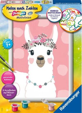 Farbige Motivlinien: Größerer Malspaß & ein schöneres Ergebnis!Dank der farbigen Motivlinien, können die Kinder das ganze Motiv No Drama Lama und die Farben schneller erkennen. Der Pinsel hat eine gute Führung und so entsteht nach und nach ein perfektes Bild.Die schönen Motive zum Ausmalen sind eine tolle Geschenkidee für Kinder ab 7 Jahren und eine schöne Dekoration für das Kinderzimmer. In diesem Malset sind bereits 13 fertig gemischte Acrylfarben enthalten.Mit Malen nach Zahlen von Ravensburger lernen die Kinder Flächen sorgfältig auszumalen, ihr Maltalent zu verbessern sowie feinmotorische Fähigkeiten zu entwickeln. Am Ende stehen Freude, Stolz und ein Erfolgserlebnis, das die Lust am Weitermalen weckt.Die Motive sind altersgerecht in drei Schwierigkeitsstufen umgesetzt: von einfachen Bildern mit wenigen, großen Malflächen bis hin zu Bildern mit vielen, kleinen Malflächen für Fortgeschrittene.Jedes Malset enthält alles, was Künstler zum Malen brauchen und es ist kein Mischen der Farben notwendig.Das Ravensburger Malen nach Zahlen Programm bietet eine große Motivauswahl für Kinder und Erwachsene.