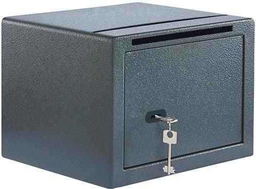 mit zwei Einwurfschlitzen · robuster einwandiger Korpus · Tür doppelwandig · verstärkte Riegelbolzen · Aufbohrschutz · für Wand- und Bodenbefestigung vorgerichtet (inkl. Befestigungsmaterial) · ideal für den Einbau in Schränke und andere Möbelstücke · mit herausnehmbarem Fachboden