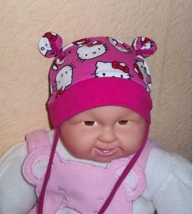 Übergangsmütze aus weicher Baumwolle, die gefüttert ist und an den Kühlen Herbsttagen richtig warm hält. Mit "Hello Kitty" Motiven versehen.