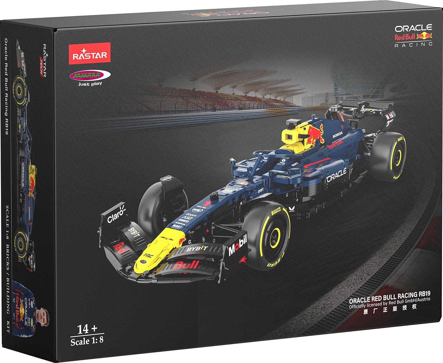 Der Oracle Red Bull Racing RB19 ist ein von Red Bull Racing entworfenes und gebautes Formel-1-Auto, das an der Formel-1-Weltmeisterschaft 2023 teilgenommen hat. Der RB19 wurde von Titelverteidiger Max Verstappen und seinem Teamkollegen Sergio Pérez zum Sieg gefahren. Das Auto markierte auch die Rückkehr von Honda als Motorenlieferant für Red Bull Racing. Das Rennauto ist das dominanteste Fahrzeug in der Geschichte der Formel- 1-Weltmeisterschaft, das im Jahr 2023 21 von allen 22 Rennen gewann und damit den bisherigen Rekord des McLaren MP4/4 übertroffen hat. Das 1:8 maßstabsgetreue Modell, begeistert mit seiner exzellenten Detailtreue und bringt dich dem echten F1 Rennwangen näher als je zuvor. Das ganze Set ist in einem stabilen Karton und beinhaltet exakt nummerierte Tütchen mit Einzelteilen sowie eine klar strukturierte, farbige Aufbauanleitung und einen Dekorbogen. Mit 2509 einzelnen Klemmbausteinen ist dieses Projekt perfekt für geübte Baumeister geeignet, erfahrene Technik-Enthusiasten ab 14 Jahren werden hier ihren Spaß am Aufbau haben. Der Rennbolide ist offiziell Lizenziert und jedes Detail wurde mit viel Liebe gestaltet, sodass das Modell voller lebensechter Mechanik steckt. Wenn also alle Teile zusammengesteckt sind, können zahlreiche realistische Funktionen entdeckt werden. Darunter ein Motor mit beweglichen Kolben, schwingende Vorder- und Hinterradaufhängung, funktionierende Lenkung und klappbare Motorabdeckung. Vor, zurück, links, rechts, so kann das 68cm lange Fahrzeug über die Rennstrecke im Wohnzimmer gelenkt werden. Tauche ein in die Welt der Ingenieurskunst und erlebe die Faszination von hochwertigem Bricks-Modellbau.