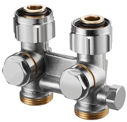 Zweirohr-Block · umstellbar auf Einrohrbetrieb · Abstand 50 mm · Weichdichtung zum Heizkörper · zum Entleeren · Befüllen und mit Voreinstellung