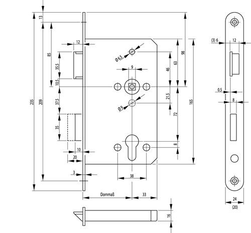 Panik-Wechselfunktion E · für einflügelige Holz- oder Stahltüren · in Kombination mit geprüften Beschlägen nach EN 179 (Notausgänge) und nach EN 1125 (Paniktüren) zugelassen ·Feuerschutzeignung · zweitourig · 1-teilige Nuss · vorgerichtet für Profilzylinder · Falle und Riegel aus Stahl · Entfernung 72 mm · Vierkant 9 mm · Stulplänge 235 mm · allseitig geschlossener Schlosskasten