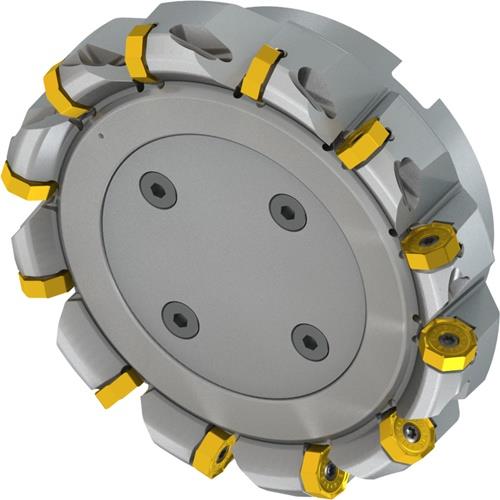 Planfräser mit doppelt negativer Geometrie welche 12 aus ONMX 0605.. · ONMX 0605..-W oder SNMX 1705.. doppelseitige Wendeschneidplatte · Schneiddurchmesser 160mm bis maximal 170,8mm mit 43° Anfahrwinkel und 40mm Bohrung gemäß DIN 8030-C · 63mm funktional und · durchgehende Kühlung und ungleicher Teilung zum Planfräsen und Entgratenmit einer maximalen Schnitttiefe von ON.. 4mm · SN.. 7mm