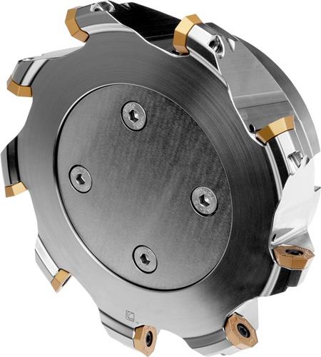 Planfräser mit doppelt positive Geometrie zum spannen von 11 Stück OEHT 0604AE.. · REHT 1604M0.. oder XEHT 0604AE.. einseitigen Wendeschneidplatten · Schnittdurchmesser 200 bis maximal 210.2mm mit 43° Anstellwinkel und 60mm Verbindungsbohrung gemäß DIN 8030-C · 63mm Überstandslänge · Kühlkanalbohrung und ungleiche Teilung zum Planfräsen und Entgratfräsen mit einer maximalen Schnitttiefe von 3.3 (9.9)mm