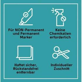 Mit Folien die Räume gestalten · an denen sich Kreativität und Produktivität entfalten können. Einfache Reinigung - Nur mit Wasser reinigen. Verwandeln Sie eine Arbeitsfläche schnell in ein Whiteboard. Haften auf zahlreichen gestrichenen Wänden und Stahl-Oberflächen sowie auf Glas und glattem Holz · Whiteboards und Kreidetafeln. Individueller Zuschnitt möglich.