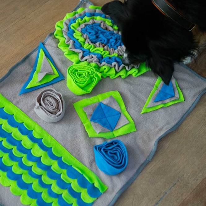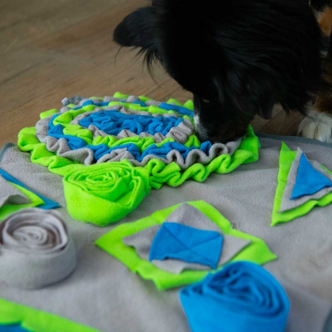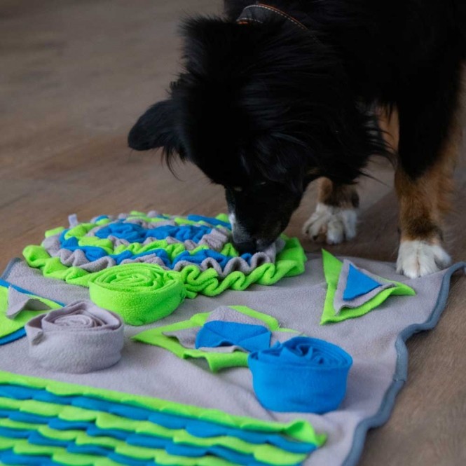 Die Intelligenzschnüffelmatte 2 ist ca. 70 x 52 cm groß und bietet diverse unterschiedliche Leckerli-Versteckmöglichkeiten und Ihrem Vierbeiner somit jede Menge Beschäftigung, Herausforderung und Spaß.