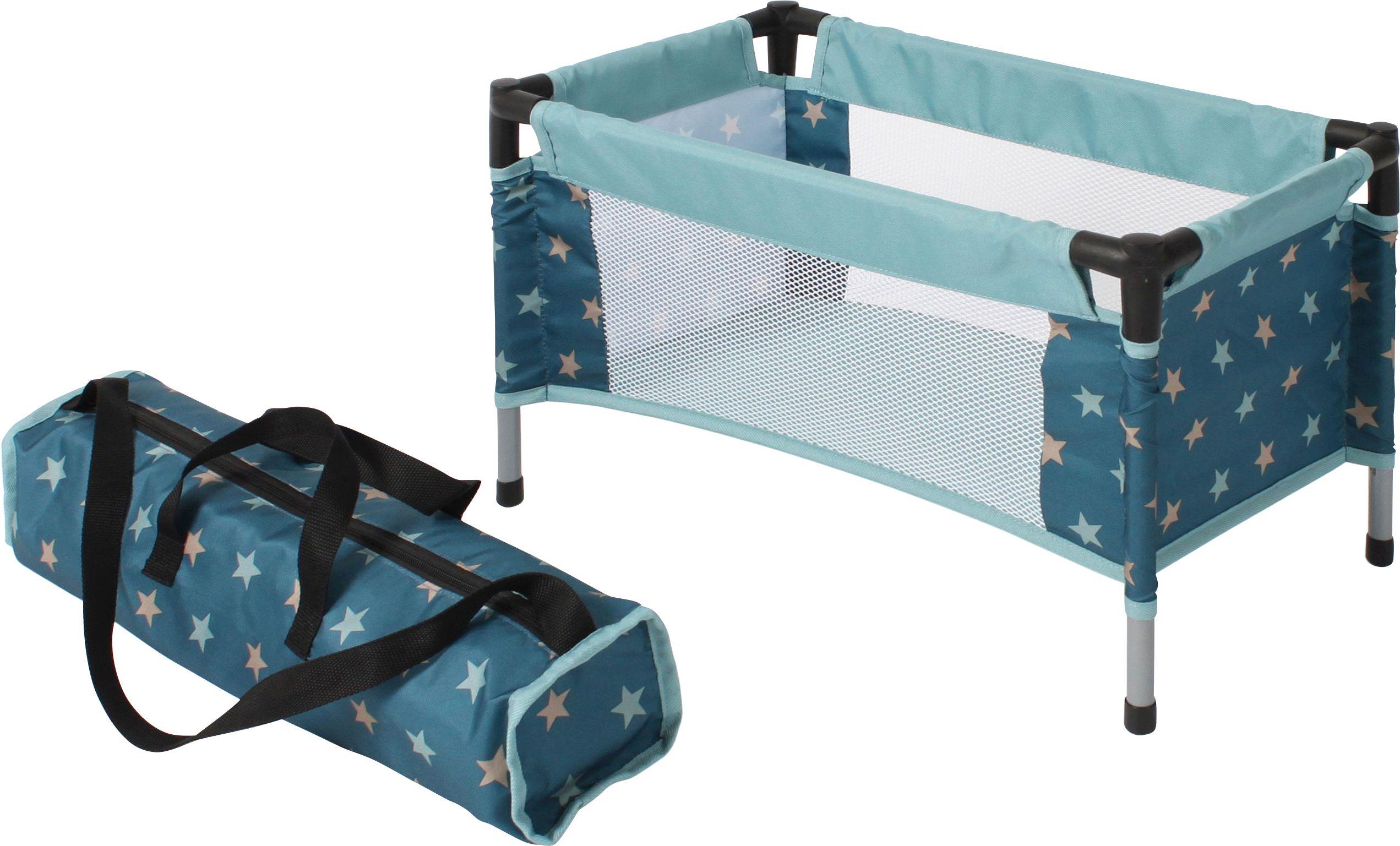 Niedliches Reisebett für Puppen mit praktischer Stoff-Tragetasche im wunderschönen Design. Das Puppenbett ist kompakt und einfach zusammenklappbar. Mit der Tragetasche kann das Reisebett einfach überall mit hingenommen werden. Es ist geeignet für Puppen bis ca. 50 cm. Artikelmaße: ca. 54 x 31 x 32 cm, Gewicht: 1,2 kg