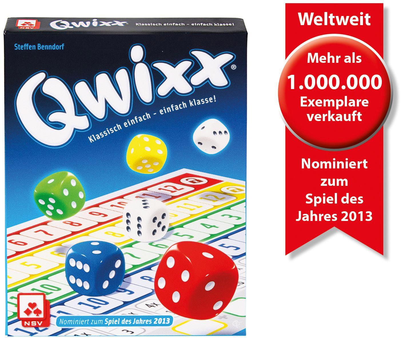 Qwixx bringt alles mit, was ein echter Würfel-Klassiker braucht: einfache Regeln, niedriger Preis, großer Spielspaß! Und das Besondere dabei: es gibt langatmigen Wartezeiten, alle sind stets am Geschehen beteiligt! Jeder möchte möglichst viele Kreuze machen. Ob das gelingt, hängt von der eigenen Entscheidung, aber natürlich auch vom Würfelglück ab. Die Spannung steigt. Wer macht einen Fehlwurf? Wer schließt die Reihen zuerst? Das Qwixx-Fieber packt jeden! Großartig!