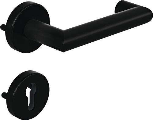 in R-Technik nach DIN 18255 und DIN EN 1906 · aus mattem Polyamid · bestehend aus: Knopf 123.23PBR und Türdrücker 165.21PBR, Durchmesser 21,3 mm und Rundrosetten 305.21PBR und 306.23PB · der Drücker erfüllt die Vorgaben der DIN EN 179 · Gebrauchskategorie: Klasse 4 mit Vierkantstift 8 - 8,5 mm · Ausführungsvorschlag! Bitte alle Maße und baulichen Gegebenheiten im Auftragsfall prüfen!