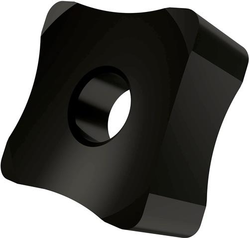 Doppelseitige Scarfing Wendeschneidplatte · quadratisch mit einer Hauptschneidenlänge von 25.4mm · 12mm dick und einen Arbeitsradius von 40mm für Rohrdurchmesser von 46 bis 58mm · T9335 MT-CVD beschichtetes funktionelles WC-Co Hartmetall innerhalb des ISO-Substratsbereichs P20-P45/M15-M40 und S15-S25 zum entgraten von Stahl · Edelstahl und Superlegierungen Rohren und Röhren