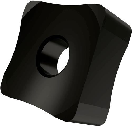 Doppelseitige Scarfing Wendeschneidplatte · quadratisch mit einer Hauptschneidenlänge von 25.4mm · 12mm dick und einen Arbeitsradius von 80mm für Rohrdurchmesser von 92 bis 116mm · T9335 MT-CVD beschichtetes funktionelles WC-Co Hartmetall innerhalb des ISO-Substratsbereichs P20-P45/M15-M40 und S15-S25 zum entgraten von Stahl · Edelstahl und Superlegierungen Rohren und Röhren