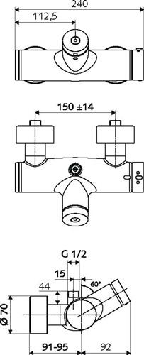 Selbstschlusskartusche SC-V · Thermostatkartusche nach EN 1111 mit entriegelbarer/arretierbarer Temperatursperre bei 38 °C und Sicherheitsverriegelung bei Kaltwasserausfall · Arretierscheibe für maximale Temperaturbegrenzung (Verbrühschutz) · 2x Rückflussverhinderer · Wandanschluss mit S-Anschlüssen und Rosette (tiefeneinstellbar) · DN 15 G 1/2? AG · Duschanschluss DN 15 G 1/2? AG