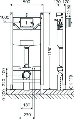 Montagemodul für Ständerwand- oder Vorwandmontage · selbsttragender Profil-Stahlrahmen mit höhenverstellbaren Füßen · Oberfläche pulverbeschichtet · mit vormontiertem Unterputzspülkasten · die Auslösung der Zweimengen-Spülung erfolgt über WC-Betätigungsplatten · Lieferumfang: Montageelement 1150 mm Höhe · Armaturenanschluss R 1/2? AG · Mitte Rückseite · UP-Spülkasten 120 mm · Betätigung von vorne · 2-Mengen-Spülung · höhenverstellbare Montagefüße 0-200 mm · Befestigungsmaterial für Montagefüße · Eckregulierventil · Füllventil · Spülrohr 45 mm mit Baustopfen · PP-Ablaufbogen 90 mm mit Baustopfen · Übergangsstück 90/110 mm · WC-Anschlussgarnitur 90 mm und WC-Befestigung M 12 x 200 mm
