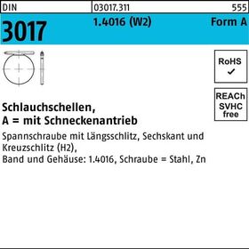 DIN 3017 1.4016 (W2) Form A Schlauchschellen · mit Schneckenantrieb - Abmessung: 16- 27/ 9 C7 VE=S (100 Stück)