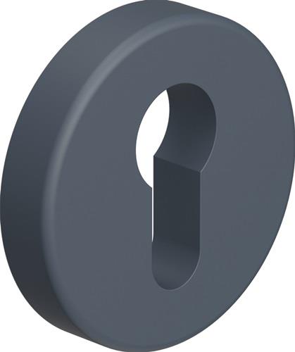 Schlüsselrosette kurze Nocken · Polyamid durchgängig eingefärbt · DIN links und DIN rechts verwendbar · in das Türblatt eintauchenden Stützzapfen · Rosetten-Abdeck-Kappe, rund, Durchmesser 55 mm, 10,5 mm hoch, 1,5 mm Wandstärke · Edition matt