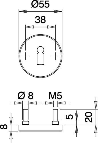 Schlüsselrosetten-Paar 055 VA F00 Schildst.8mm BB rd.EDI