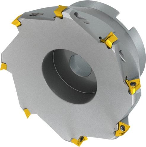 Eck-und Planfräser mit doppelt negativer Geometrie welche 8 aus TNGX 1606.. doppelseitige Wendeschneidplatte · Schneiddurchmesser 140mm mit 90° Anfahrwinkel und 40mm Bohrung gemäß DIN 8030-A · 63mm Einsatzlänge · durchgehende Kühlung und ungleicher Teilung zum Planfräsen · flachen Schulterfräsen · flachen Nutfräsen und Spiralfräsen in vorbearbeiteten Löchern