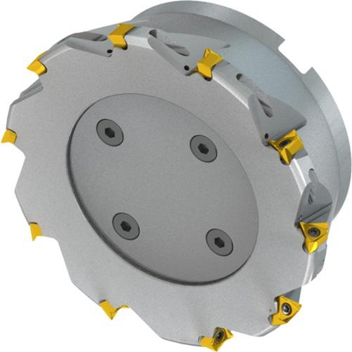 Eck-und Planfräser mit doppelt negativer Geometrie welche 10 aus TNGX 1606.. doppelseitige Wendeschneidplatte · Schneiddurchmesser 160mm mit 90° Anfahrwinkel und 40mm Bohrung gemäß DIN 8030-C · 63mm Einsatzlänge · durchgehende Kühlung und ungleicher Teilung zum Planfräsen · flachen Schulterfräsen · flachen Nutfräsen und Spiralfräsen in vorbearbeiteten Löchern