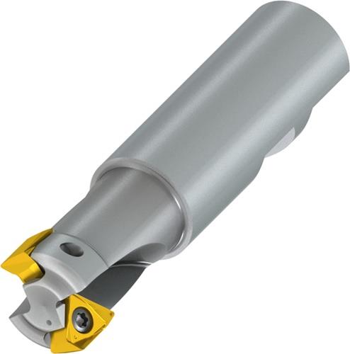 Eck-und Planfräser mit doppelt negativer Geometrie welche 2 aus TNGX 1606.. doppelseitige Wendeschneidplatte · Schneiddurchmesser 25mm mit 90° Anfahrwinkel und 25mm Weldonschaft gemäß DIN 1835B · 42mm anwendbar und 110mm Gesamtlänge · durchgehende Kühlung zum Planfräsen · flachen Schulterfräsen · flachen Nutfräsen und Spiralfräsen in vorbearbeiteten Löchern