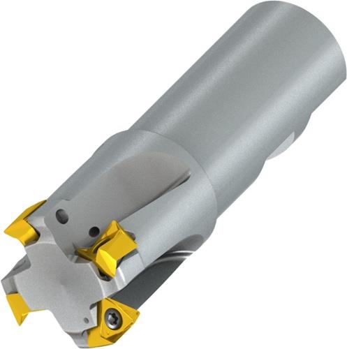 Eck-und Planfräser mit doppelt negativer Geometrie welche 4 aus TNGX 1606.. doppelseitige Wendeschneidplatte · Schneiddurchmesser 40mm mit 90° Anfahrwinkel und 32mm Weldonschaft gemäß DIN 1835B · 50mm anwendbar und 120mm Gesamtlänge · durchgehende Kühlung zum Planfräsen · flachen Schulterfräsen · flachen Nutfräsen und Spiralfräsen in vorbearbeiteten Löchern