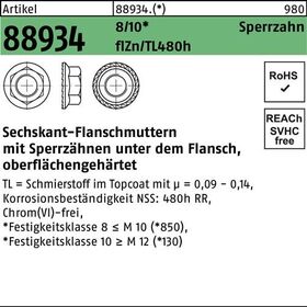 Artikel 88934 8 Sperrzahn flZn/TL 480h (zinklamellenbe.) Sechskant-Flanschmuttern mit Sperrzähnen unter dem Flansch · oberflächengehärtet - Abmessung: M 6 VE=S (500 Stück)