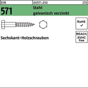 DIN 571 Stahl galvanisch verzinkt Sechskant-Holzschrauben - Abmessung: 10 x 70 VE=S (100 Stück)