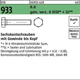 DIN 933 8.8 galv. verz. 8 DiSP + SL Sechskantschrauben mit Gewinde bis Kopf - Abmessung: M 16 x 100 VE=S (25 Stück)