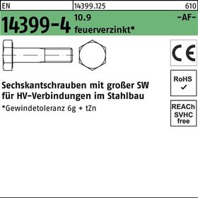 EN 14399-4 10.9 feuerverzinkt -AF- Sechskantschrauben mit großer SW für HV-Verbindungen im Stahlbau - Abmessung: M 16 x 120 VE=S (1 Stück)