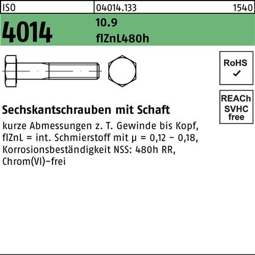 ISO 4014 10.9 flZnL 480h (zinklamellenbesch.) Sechskantschrauben mit Schaft - Abmessung: M 10 x 100 VE=S (100 Stück)