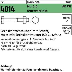 Sechskantschraube ISO 4014 Schaft M12x 60 Mu 5.6 W7 feuerverz. 100 Stück - VPE: 100