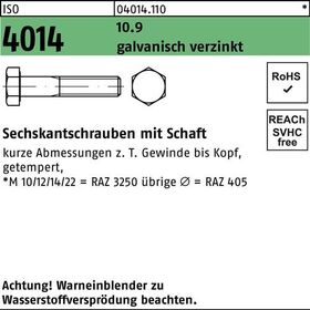 ISO 4014 10.9 galvanisch verzinkt Sechskantschrauben mit Schaft - Abmessung: M 16 x 65 VE=S (25 Stück)