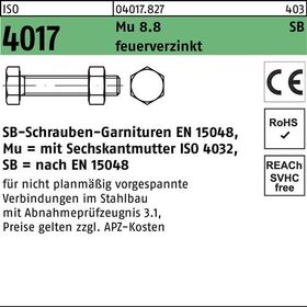 ISO 4017 Mu 8.8 SB feuerverzinkt SB-Schrauben-Garnituren EN 15048 · mit Sechskantmutter ISO 4032 - Abmessung: M 8 x 25 VE=S (200 Stück)