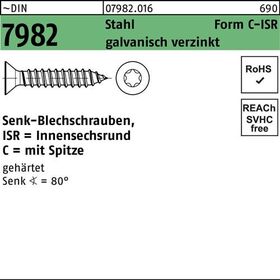 ~DIN 7982 Stahl Form C-ISR galvanisch verzinkt Senk-Blechschrauben mit Spitze · Innensechsrund - Abmessung: 3,9 x 22 -C-T20 VE=S (500 Stück)