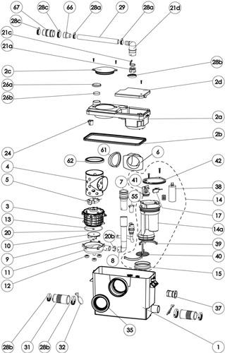 Kompaktanlage zur Förderung von fäkalienhaltigem Abwasser · Komplettlösung (Montagerahmen · Spülkasten · Bedienpaneel plus Hebeanlage)