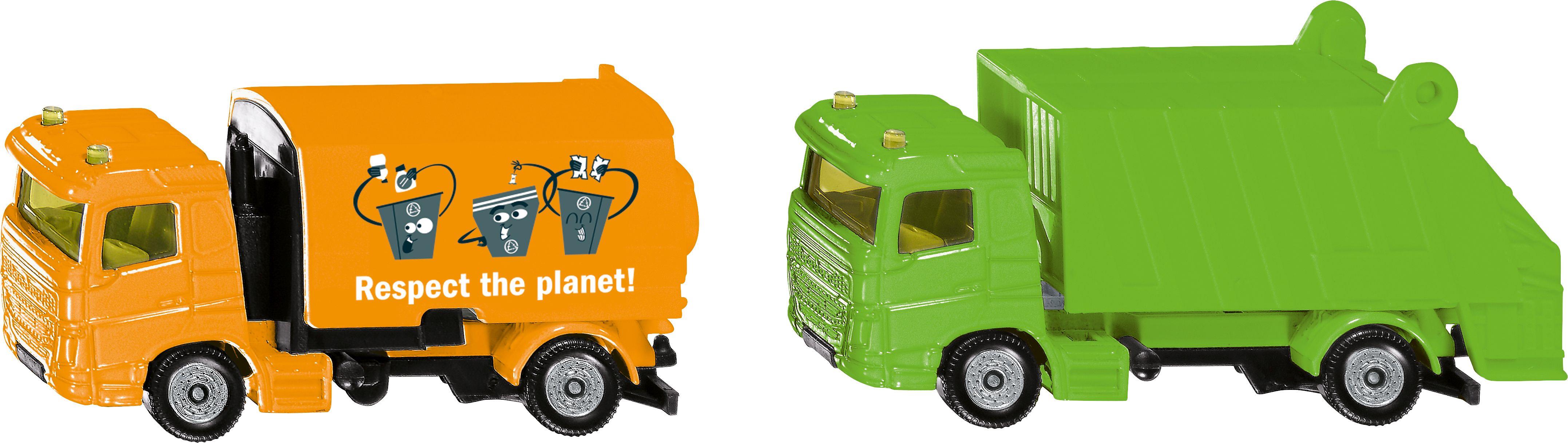Dieses neue Kommunalset von siku bringt Sauberkeit und Ordnung in die Stadt – jetzt mit frischem Design! Der Müllwagen erstrahlt in lebendigem Grün, während die Kehrmaschine im kräftigen Orange auffällt, beide mit moderner Bedruckung. Gemeinsam sorgt das kraftvolle Duo dafür, dass Straßen und Plätze blitzblank bleiben, und ist bereit für alle Aufgaben im Kinderzimmer. Die beiden Modelle besitzen stabile, zweiachsige Kunststofffahrgestelle mit leichtgängigen Rädern und robuste Metall-Fahrerhäuser. Die Kehrmaschine ist mit einem Aufbau aus Kunststoff und einer Saugeinrichtung ausgestattet, während der Müllwagen über einen kippbaren Aufbau und eine zu öffnende Heckklappe verfügt. Der Aufdruck „Clean your City auf dem Müllwagen unterstreicht die Mission: Mit diesem Set können kleine Stadtreiniger voller Begeisterung ans Werk gehen und spielerisch für Sauberkeit sorgen.