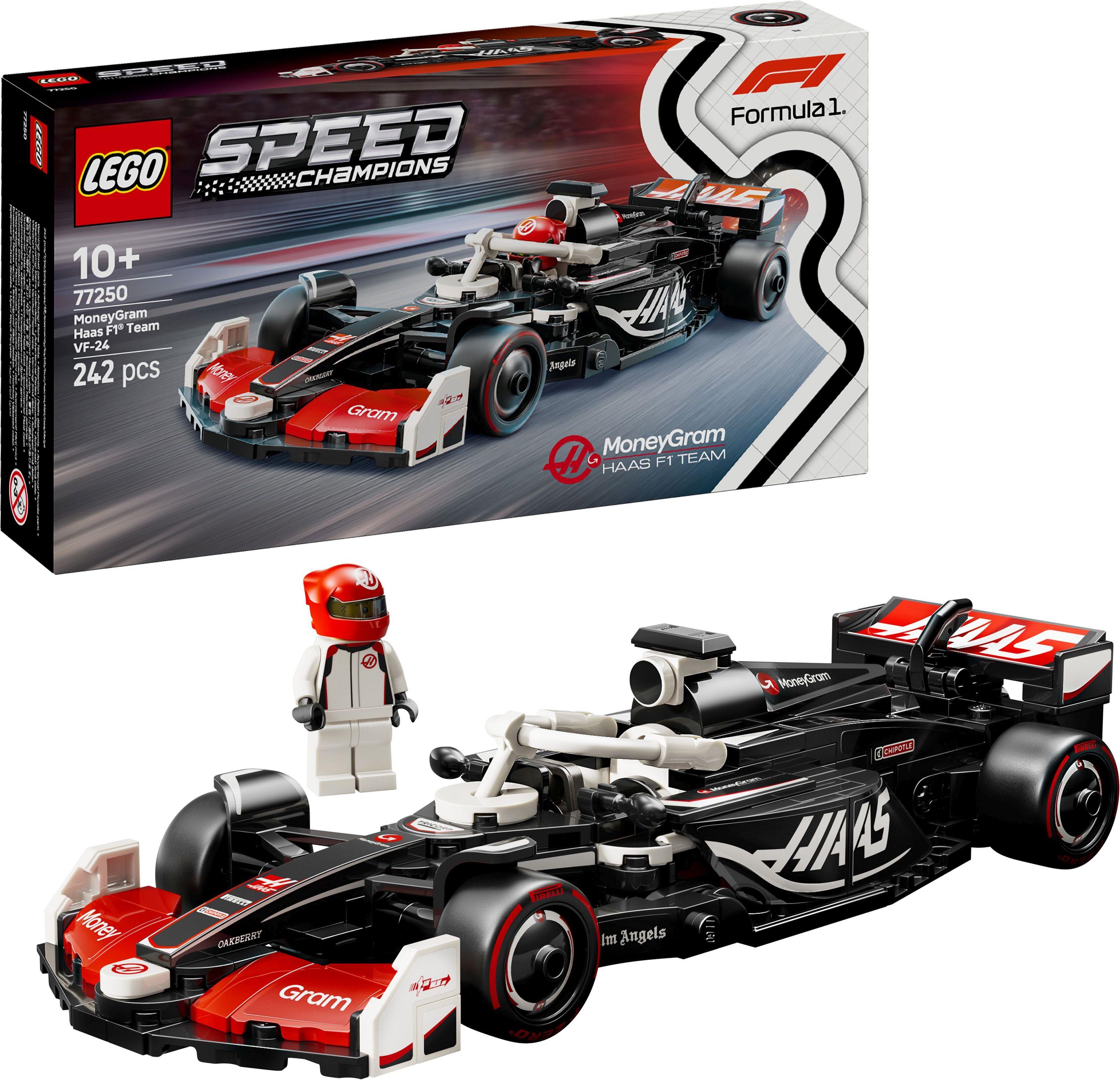 Das LEGO Speed Champions MoneyGram Haas F1 Team VF-24 Rennauto (77250) lässt Jungen und Mädchen die Faszination echter Formel 1 Rennen hautnah erleben. Kinder und erwachsene Liebhaber von Rennwagen können das Modellauto bauen, der dieselben Designdetails hat wie der echte Bolide, der in der Formel-1-Saison 2024 an den Start gegangen ist. Das Modell des F1-Rennwagens hat ein Cockpit, das sich öffnen lässt, indem man den Halo-Bügel hochklappt, einen Heckflügel, einen Querlenker, Sponsorenaufkleber und breitere Hinterreifen mit dem Aufdruck „Pirelli. Zu dem Spielzeug Auto gehört auch eine Rennfahrer Minifigur mit Helm und im Rennoverall des MoneyGram Haas F1 Teams, die man fürs Rennen ins Cockpit setzen kann. LEGO Speed Champions Sets und Bauzpielzeuge lassen Kinder und Motorsportfans Modelle von einigen der legendärsten Flitzern der Welt bauen. Hierzu zählen auch noch andere separat erhältliche Modelle von Boliden, die in der Formel-1-Saison 2024 um den Titel mitgefahren sind. Jedes dieser LEGO Fahrzeuge lässt sich mithilfe einer gedruckten Bauanleitung zusammenbauen. Oder du lässt dich und dein Kind von der LEGO Builder App auf ein vergnügliches Bauabenteuer mitnehmen. Das MoneyGram Haas F1 Team Rennauto ist 4 cm hoch, 20 cm lang und 8 cm breit. Enthält 242 Teile.