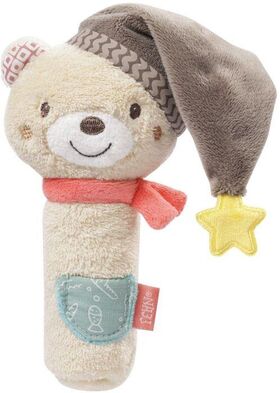 Der Stabgreifer Bär aus der Bruno Kollektion lässt sich greifen, fühlen, rasseln und quietschen und fördert damit das Interesse des Babys und lädt zum Entdecken und Forschen ein. Die Stabrassel mit Quietsche fördert spielend den Hör-, Greif- und Tastsinn sowie die Feinmotorik des Babys und eignet sich somit ideal als Geschenk zur Geburt, Taufe oder zum Geburtstag. Kleine Entdecker werden den niedlichen Bären schnell in ihr Herz schließen und ihn als treuen Begleiter überall mit hinnehmen – ob zuhause, unterwegs, in der Babyschale oder im Wagen!