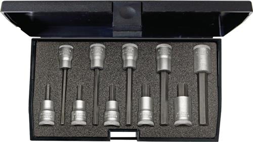10 mm (3/8 ?)-Vierkantantrieb · für Schrauben mit Innensechskant-Profil · Vanadium-Stahl · verchromt · Klinge aus Sonderstahl manganphosphatiert · griffig gerändeltInhalt:je 1 Steckschlüssel-Einsatz für Schrauben mit Innensechskant-Profil Gr. 4* / 5* / 6* / 8** / 10** mmje 1 Steckschlüssel-Einsatz für Schrauben mit Innensechskant-Profil lange Ausführung Gr. 4*** / 5*** / 6*** / 8*** / 10**** = 47 mm lang** = 49 mm lang*** = 95 mm lang