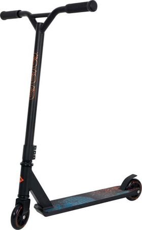 Das brandneue Einstiegsmodell im Bereich der Stunt-Scooter heißt 360 und kommt in zwei Farbstellungen. Der 360 ist das perfekte Modell, um sich an die ersten Tricks und Stunts zu wagen. Das hochwertige Deck (50x10cm) aus Aluminium in Kastenbauweise macht den Scooter sehr verwindungssteif und robust. Das trendige Graphic Griptape macht das Deck rutschfest und sorgt bei allen Tricks für stabilen und sicheren Stand. Verbunden sind Lenkrohr und Gabel mit einer 3-fach Klemme mit geschraubtem Steuersatz - die passenden Inbusschlüssel liegen bei. Die hochwertigen und komfortablen TPR Griffe sorgen stets für einen sicheren Halt und gute Schockabsorbtion. Selbstverständlich ist der Lenker um 360 Grad drehbar für alle Tricks und Stunts. Der 52 cm breite und 82 cm hohe Lenker ist wie immer bei Stunt Scootern nicht höhenverstellbar. Am Hinterrad verfügt der Schildkröt 360 über eine robuste Bremse für ein schnelles und sicheres Abbremsen des Scooters. Der 360 ist werksseitig mit 100mm Rollen aus griffigem PU ausgestattet (Härtegrad 82A), diese Rollen sind auf robusten Kunststoff-Felgen montiert, die auch den ersten Sprüngen und Stunts standhalten. Leichtläufige ABEC 7 Kugellager machen den 360 perfekt. Der Schildkröt 360 kommt vormontiert im Karton. Der Lenker muss mit beiliegendem Inbusschlüssel angeschraubt werden, was aber keine wirkliche Herausforderung darstellt. Bitte Anleitung und Warnhinweise vor der ersten Fahrt gut durchlesen. Wir empfehlen das Tragen der entsprechenden Schutzausrüstung. Übrigens: Namensgeber für diesen tollen Scooter von Schildkröt ist der Trick 360. Hierbei dreht sich der Fahrer mit dem Scooter während der Fahrt um 360 Grad. Die über 100 Jahre alte deutsche Marke Schildkröt gilt als Erfinder des Tischtennisballs. Heute bietet Schildkröt neben Tischtennis auch eine sehr umfangreiche Funsport- und Funwheel Kollektion an und gilt als Marktführer in diesem Bereich.