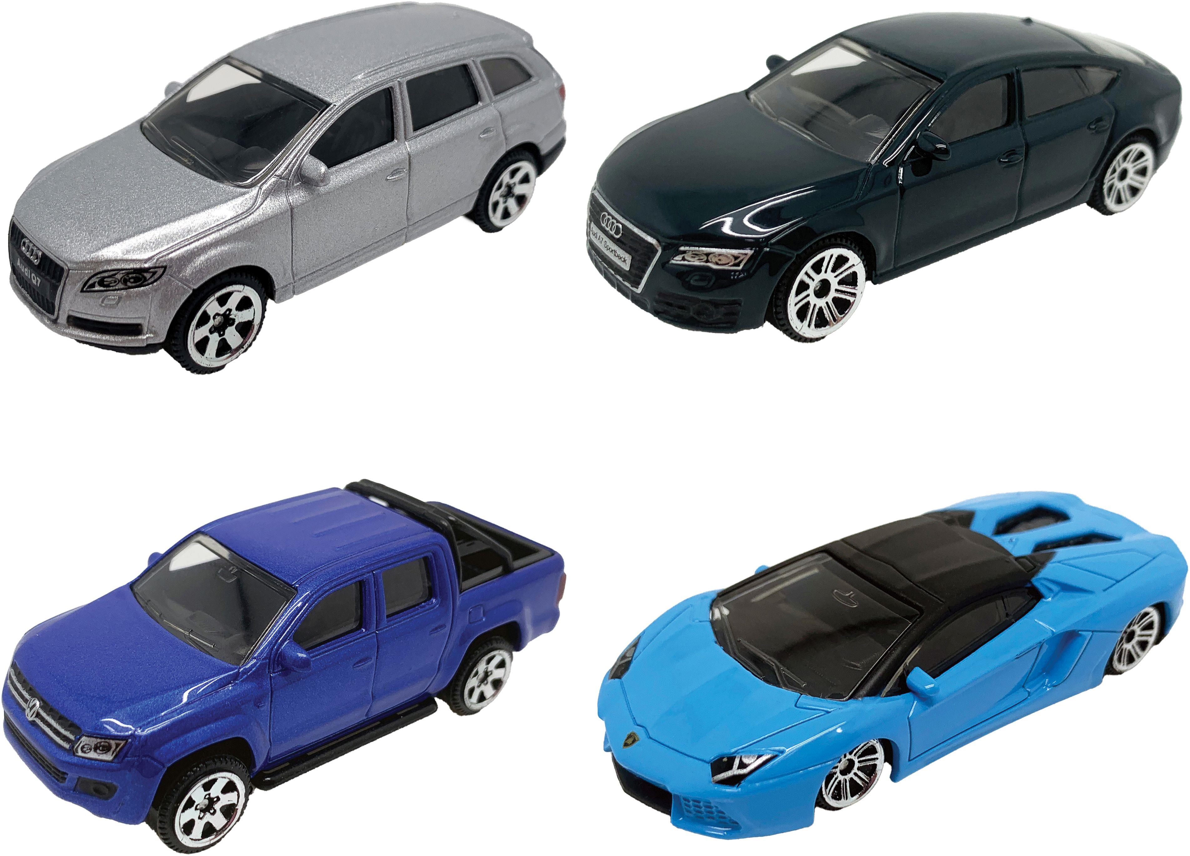 Speedzone Lizenzfahrzeuge, 12-fach sortiert: Audi, Volkswagen Lamborghini, BMW und Ford. 48 Stück im Display. Maßstab 1:64. Mit Freilauf und Federfunktion. Maße ca. 7,7x3,2x2,3 cm. Für Kinder ab 3 Jahren.