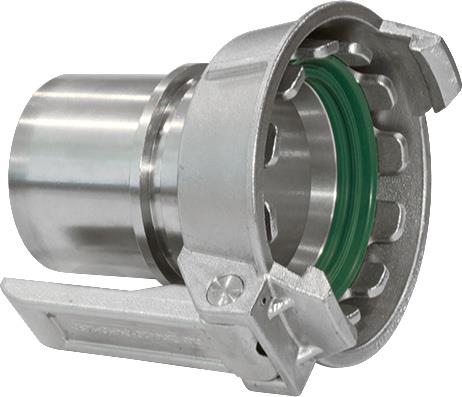 Mit glattem Schlauchstutzen und Sicherungsbund für Klemmschalenmontage. Mutterteil Typ MK bestehend aus Kronenring · Spannring und Hebel.