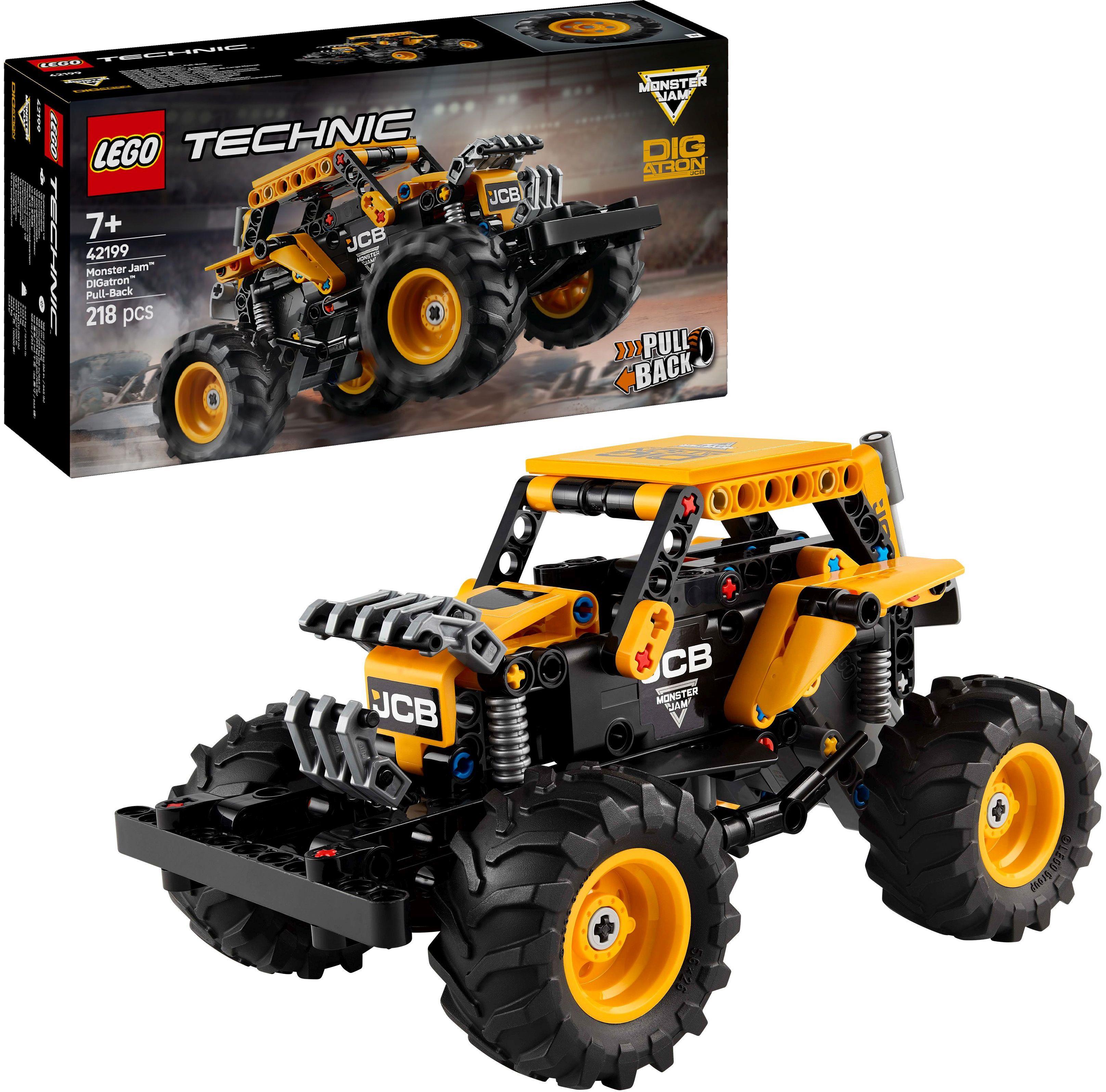 Dieser Spielzeug-Monstertruck lässt Jungen und Mädchen ab 7 Jahren spektakuläre Monster Jam Stunts vorführen. Der LEGO Technic Monster Jam DIGatron (42199) hat eine coole Rückziehfunktion, die das Modellauto losflitzen lässt, damit Kinder die atemberaubenden Stunts ihrer liebsten Monstertrucks nachstellen können. Dieses detailgetreue Spielzeugauto ist mit auffälligen Grafiken verziert und besitzt authentische Monster-Jam-Funktionen wie die Schaufel, den Greifer und die riesigen Reifen des echten DIGatron. Du suchst ein tolles Geschenk für ein Kind? Dann ist dieses Bauspielzeug eine tolle Wahl für alle, die die Faszination spektakulärer Monster-Jam-Events lieben. LEGO Technic Sets stellen LEGO Baumeistern die Welt der Technik auf verständliche Weise vor, denn die Bewegungen und die mechanischen Elemente werden realistisch nachgebildet. Das Modell ist 10 cm hoch, 19 cm lang und 11 cm breit. Enthält 218 Teile.