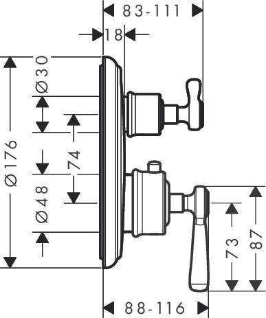 Thermostat AXOR MONTREUX UP m Abstellventil u HGri pol. bl chrome