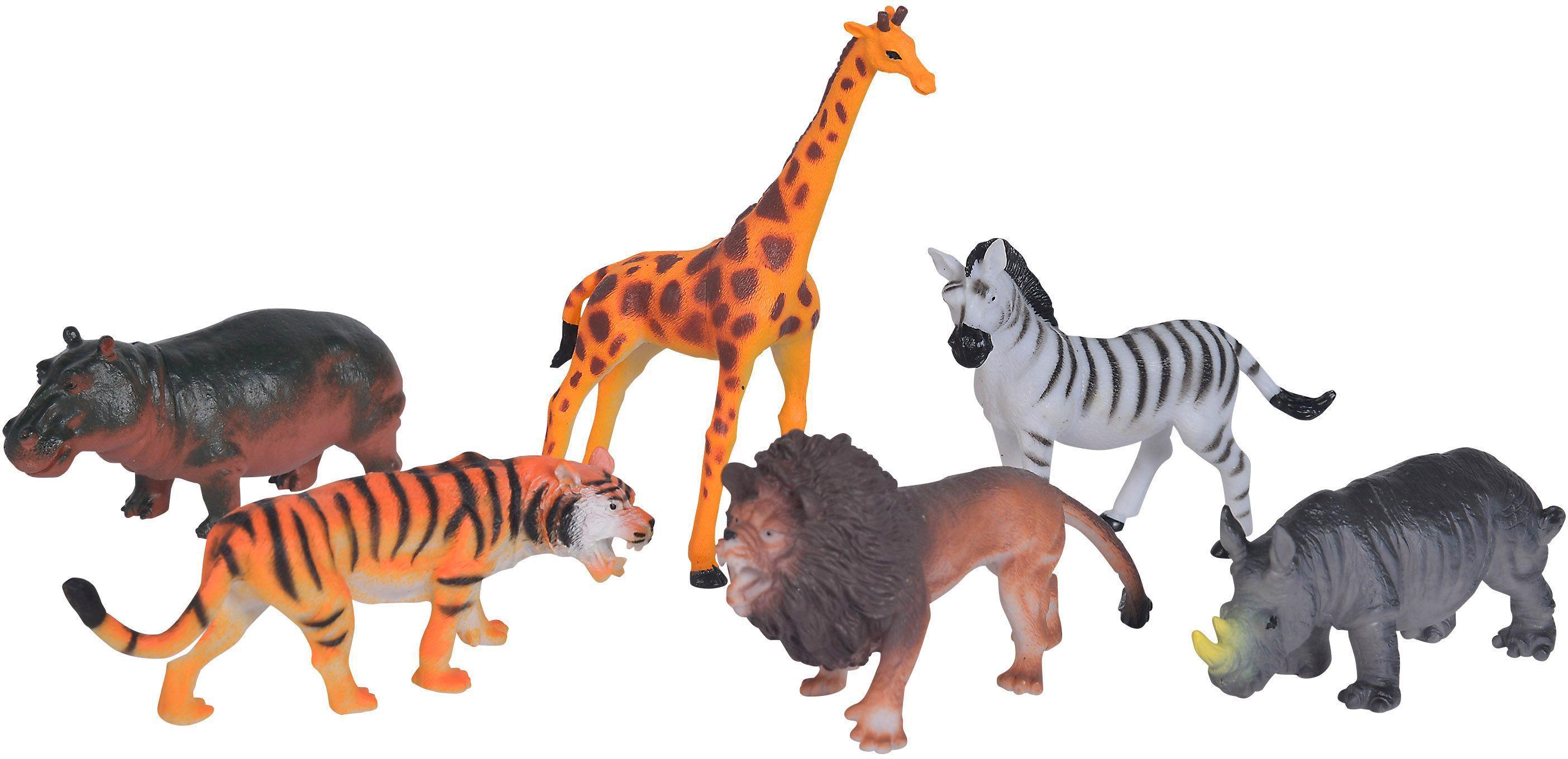 6x Farmtiere, 6x Safaritiere oder 8x Dinosaurier, 9-12cm, bunt bedruckte Tüte, 3J+