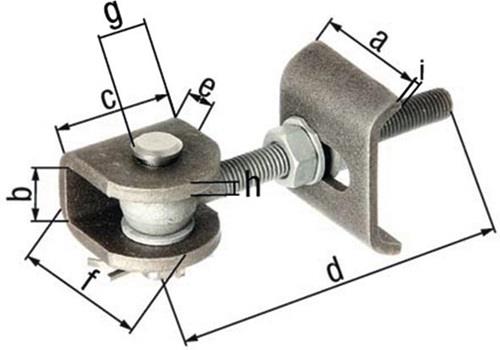 für 180° Öffnung · Rahmenanschweißteil als U-Teil ersetzt das Knotenblech · Anschweißteile Material: Stahl roh · Schrauben und Muttern Oberfläche: feuerverzinkt · Bolzen und Splint Material: Edelstahl zum Anschweißen