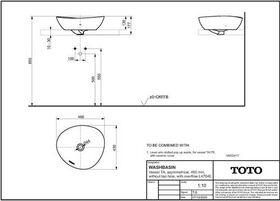 TOTO TA Aufsatzwaschtisch 465mm o HL m Überlauf asymmetrisch we