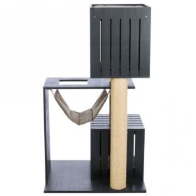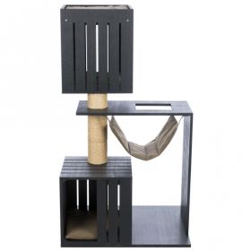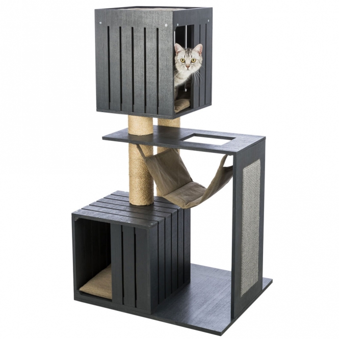 Kratzbaum Freia ist nicht nur eine perfekte Ausruh- und Klettergelegenheit für deine Katze, sondern auch optisch ein toller Einrichtungsgegenstand für deinen Wohnbereich. Sandfarbener Canvas und anthrazit lackiertes Sperrholz vermitteln ein maritimes Feeling – gleichzeitig verfügt unser Kratzbaum über zwei bequeme Höhlen mit Wendekissen, eine gemütliche Hängematte sowie ein Kuschelbett auf der oberen Etage und diverse Kratz- und Kletterflächen aus Sisal.