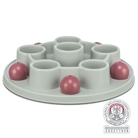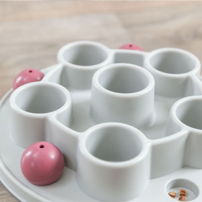 - Spielbrett mit Vertiefungen und 5 Abdeckkugeln